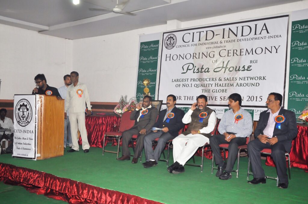 The Council for Industrial and Trade Development (CITD) proudly organized a Felicitation Ceremony to honor Pista House for its remarkable achievements and consistent contribution to culinary excellence during the festive seasons from 2012 to 2017. In the year 2015, Pista House earned national and international acclaim as the World’s Largest Producer & Seller of No.1 Quality Haleem, setting a gold standard for taste, quality, and hygiene.